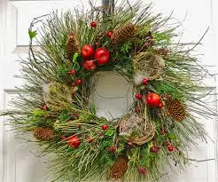 Τα υλικά με τα οποία φτιάχνεται είναι κυρίως έλατο, κουκουνάρια, ρόδια, γκι και ου και το σχήμα του κυκλικό.